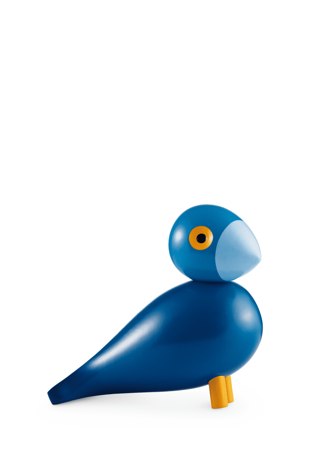 Kay is named after Mr. Bojesen himself who was a great fan of the colour blue. He was always either dressed in an immaculate blue suit, shirt and tie or a white smock. The Songbird – like his five colourful siblings – was never put into production when first designed by Kay Bojesen in the 1950s.